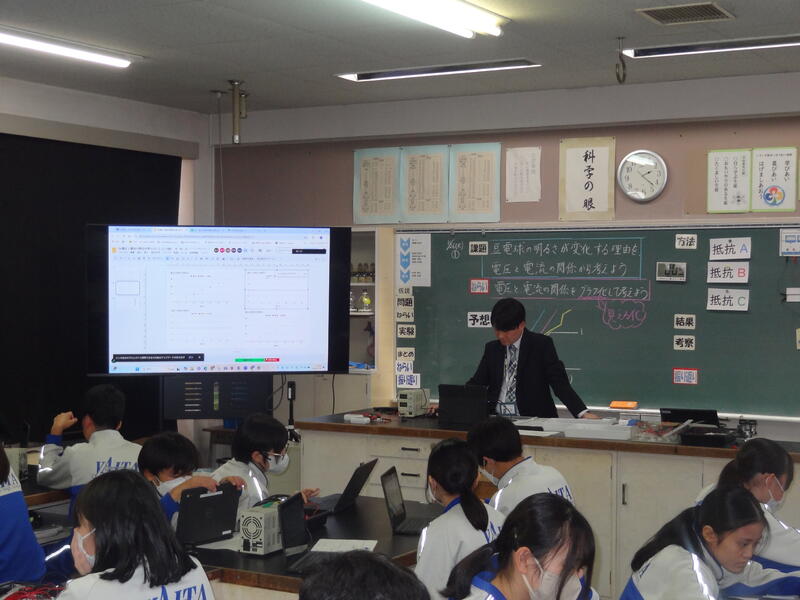 講師には、白鴎大学 上野 耕史 教授をお招きし、矢板市教育委員会 樋山貴洋 指導主事が、本校2年生のクラスにおいて、理科の提案授業を行いました。