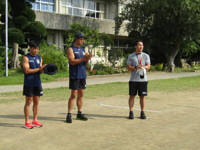 これは、県生涯スポーツ課が「『スポーツ立県ちば』のより一層の推進を目指し、広く子どもたちにスポーツの楽しさを体験させるために、県内トップ・プロスポーツ団体に所属する選手やOB、コーチ等を講師として小中学校へ派遣し、体育・スポーツ活動での交流を行う」という趣旨で行っている事業です。