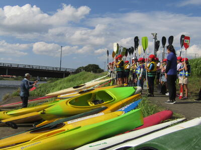 最後のプログラムは栗山川でのカヌー体験です。