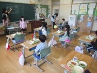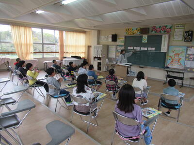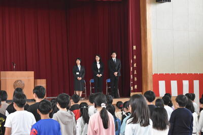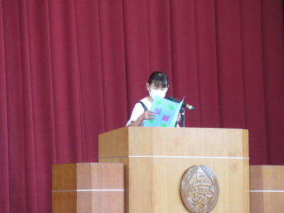 賞状授与のあと、1年生児童の代表スピーチ、修了証授与、生徒指導主任の話と続きました。