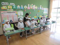 21日(木) 5年生が調理実習で白玉団子のおやつを作りました。
