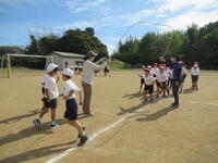 陽ざしたっぷりのグラウンドで1年生が長縄跳びの練習をしていました。