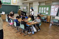 1・2年生は朝の活動15分間を使っての外国語活動ですが、今回は、45分で活動しました。