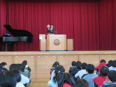 2学期末は、インフルエンザ等の感染症で各クラスに欠席者がありましたが、今日は、欠席ゼロのクラスもあり、どのクラスも集中してお話を聞いていました。