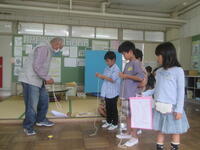 7日の音楽発表会の後、1・2年生は社会福祉協議会の方に教えていただいて昔遊びを体験しました。