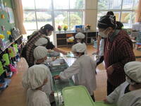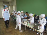 2年生になり、自分たちで教室まで運ぶようになりました。配膳(準備)は慣れたものです。