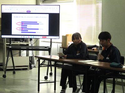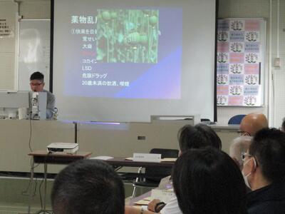 12/1(月)に、学校薬剤師の方をお招きし、薬物乱用防止教室を実施しました。当日は学校運営協議会委員の方も出席していただき、全校生徒とリモートで行い、保健委員からの発表と薬剤師の方の講義を受けました。