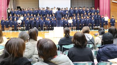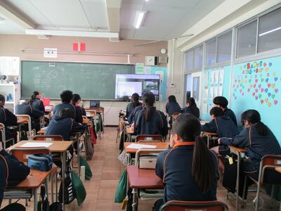 11日(木)に、1年生の保護者会が行われました。前期・後期の学級委員が2学期を振り返って、3学期に向けてをスライドを使って発表していました。1月のスキー教室についての話などがあり、最後に学年合唱を披露しました。
