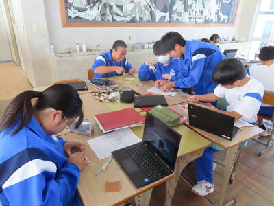 1年生の美術です。紙粘土を使った作品作りです。HP担当者、久し振りに紙粘土の感触を楽しみました。