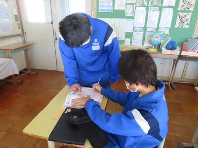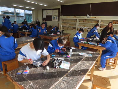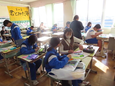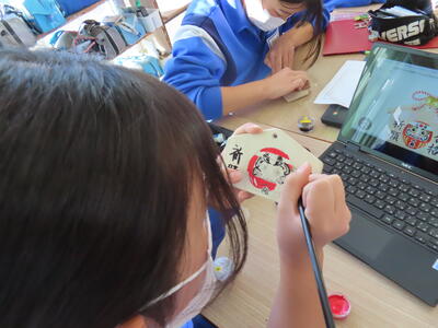 3年生の美術です。絵馬を作成していました。合格に導いてくれる絵馬を作成してほしいです。
