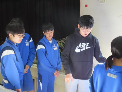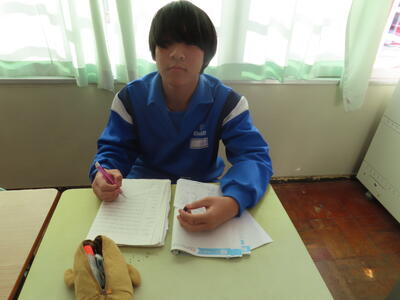 3年生の英語、スピーキングテストです。緊張の面持ちでした。