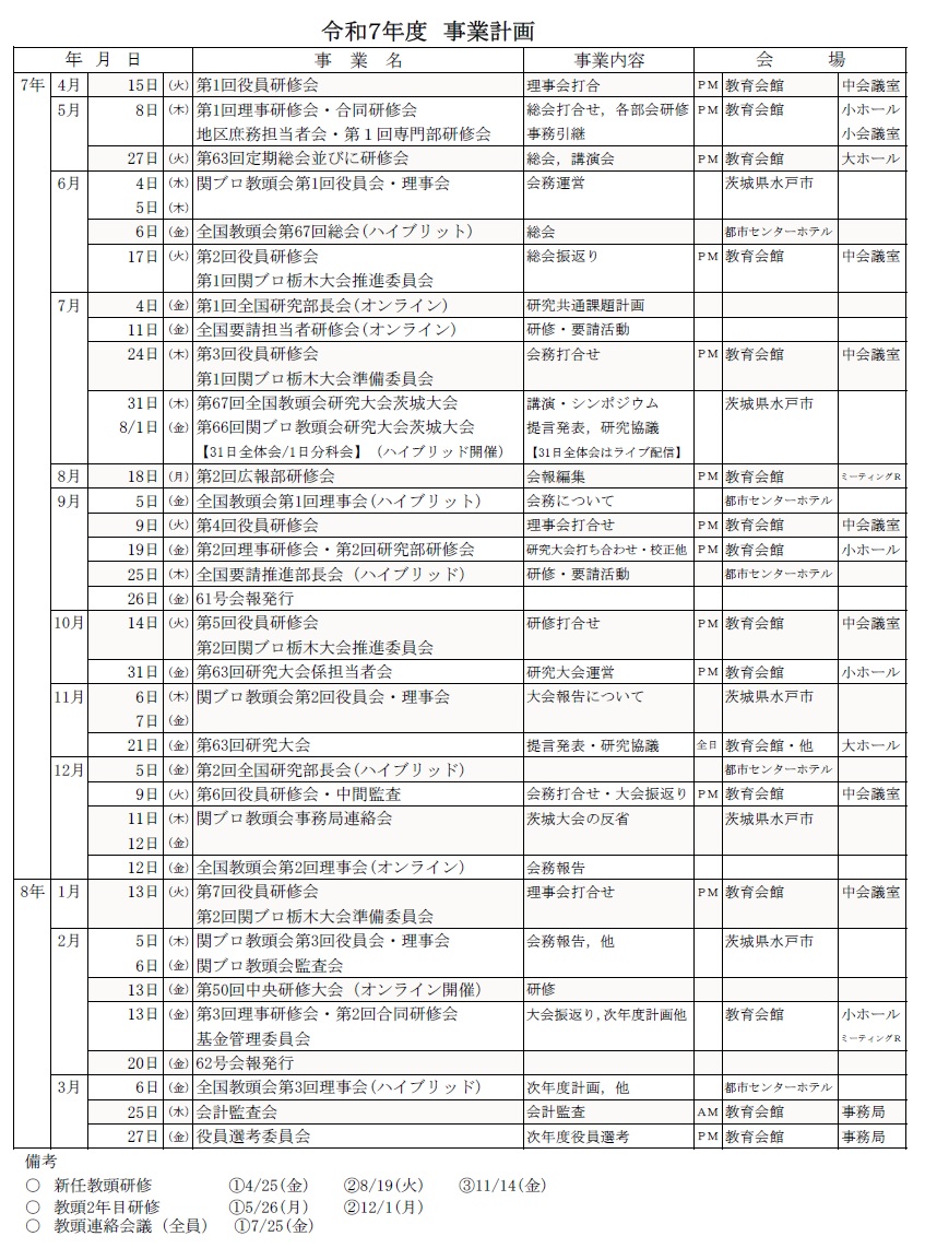 栃木県公立小中学校教頭会事業計画