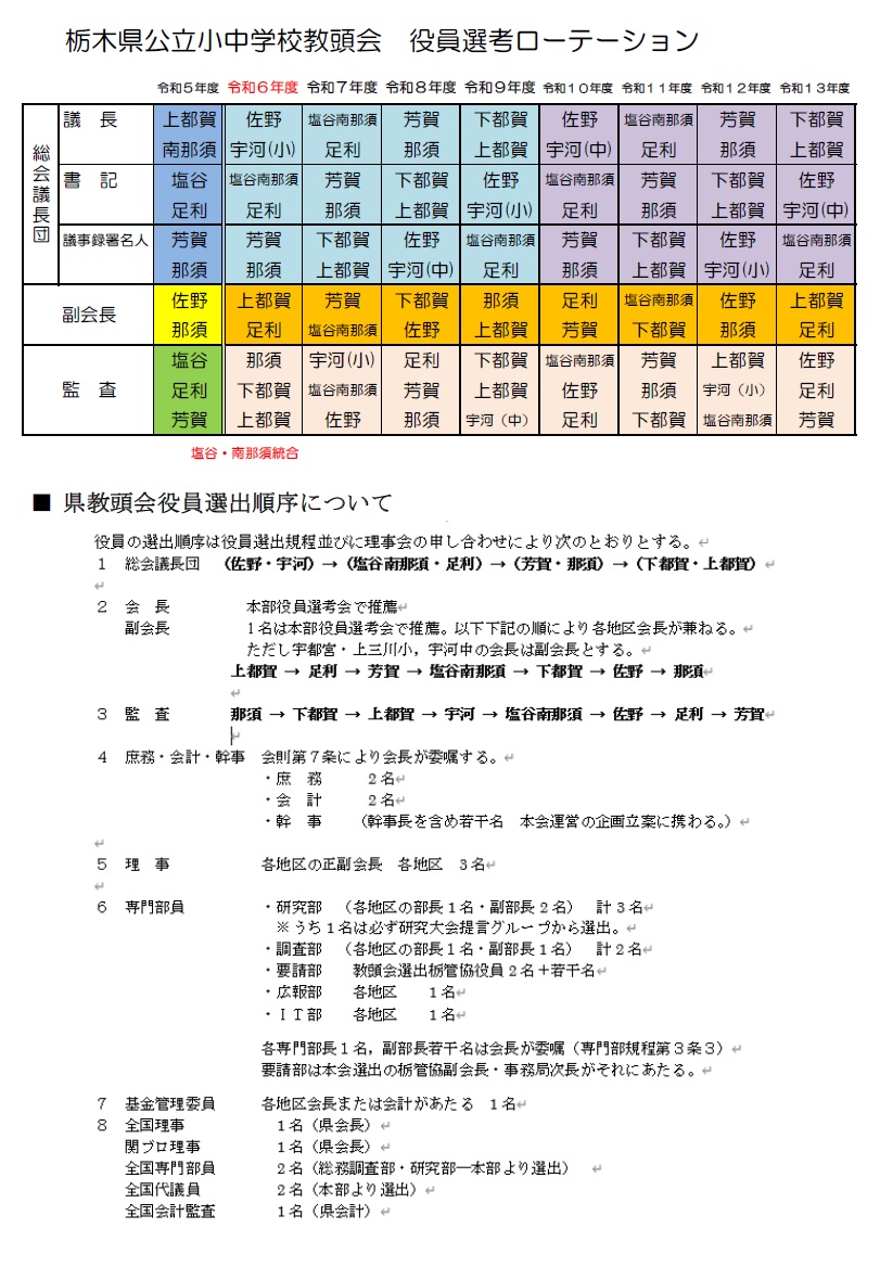 県教頭会役員選出ローテーション